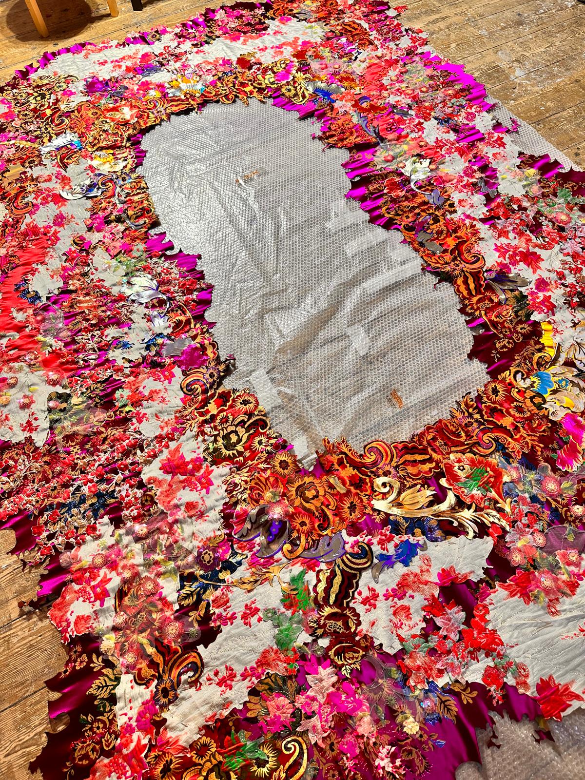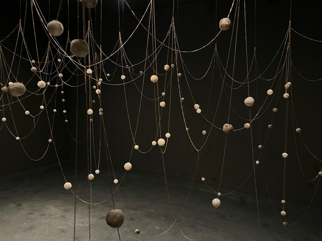 The permanent exhibition foregrounds material processes that carry memory, labor, and time. Margret Eicher presents large-scale Jacquard tapestries that fuse pop-cultural and historic imagery, collapsing distinctions between high and low, past and present, to question cultural memory and mediated realities. Luis Carrera-Maul contributes sculptural paintings in porcelain on canvas that register climate change as both material transformation and slow violence – surfaces fracture, warp, and bear the marks of environmental instability. Newly commissioned sculptural installations by Malta-based artists Duška Malešević, Madeleine Fenwick, and the duo Rachelle & Aaron Bezzina anchor the exhibition within local perspectives. Malešević’s mirrored postcard installations serves as a reflection upon reflection, where bodies fracture, language falters, and the necessity of change – whether through action, refusal, or silence – quietly asserts itself. Fenwick’s interactive candy sculptures stage a tension between seduction and consequence, suggesting that responsibility – ecological as much as ethical – begins at the moment when comfort gives way to resistance. While through a language of balance and resistance, Rachelle & Aaron Bezzina’s pendulum installation reframes equilibrium not as resolution but as ongoing negotiation.