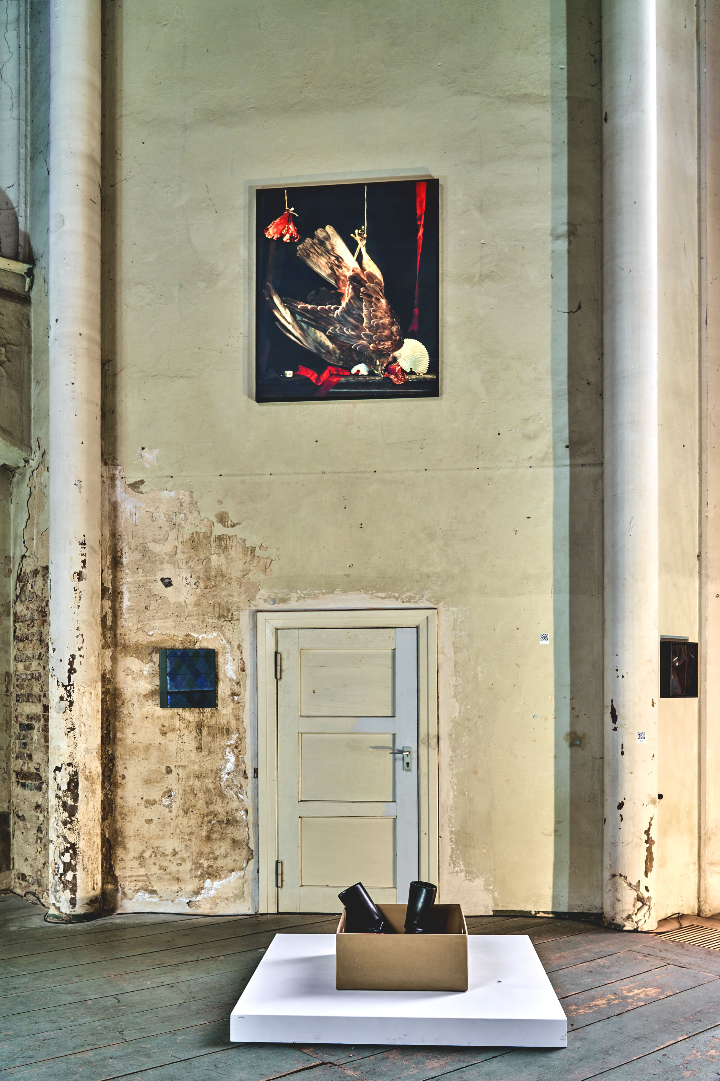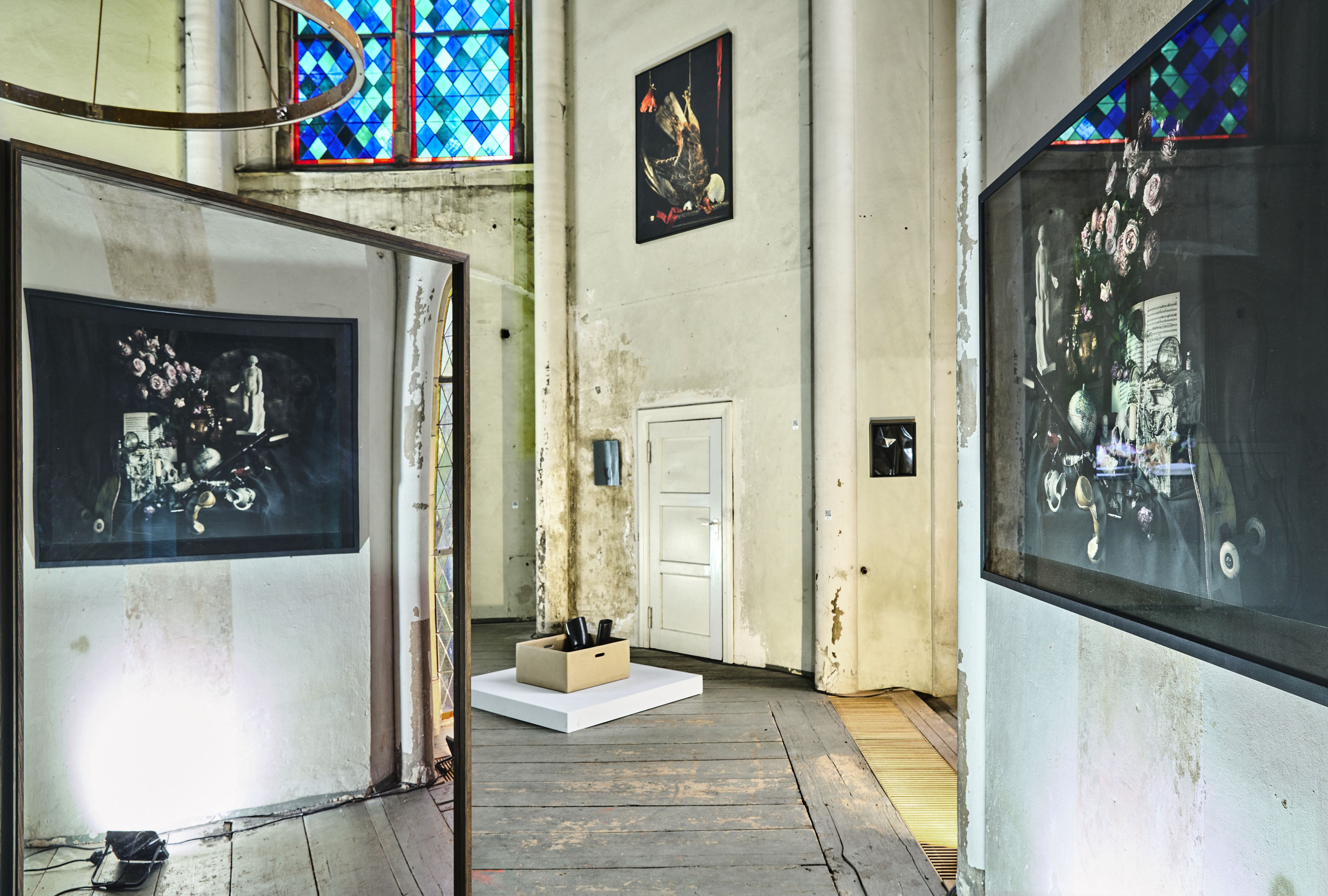 Points of Resistance IV: SKILLS FOR PEACE takes its name from the and still life SKILLS, by the renowned German composer Sven Helbig. Created in the style of baroque vanitas painting, it depicts, among other things, a vaccine vial, a skateboard, his iPhone, and the cables of his first computer under the neutered protective gesture of Hermes, the messenger of the gods, in addition to the common attributes of the still life genre. The central score features Strauss’s setting of Nietzsche’s Thus Spoke Zarathustra. The deformed Hermes thereby reveals the dual questions: that of the divine idea, and that of the self-conquest of man without God as proclaimed by Nietzsche.