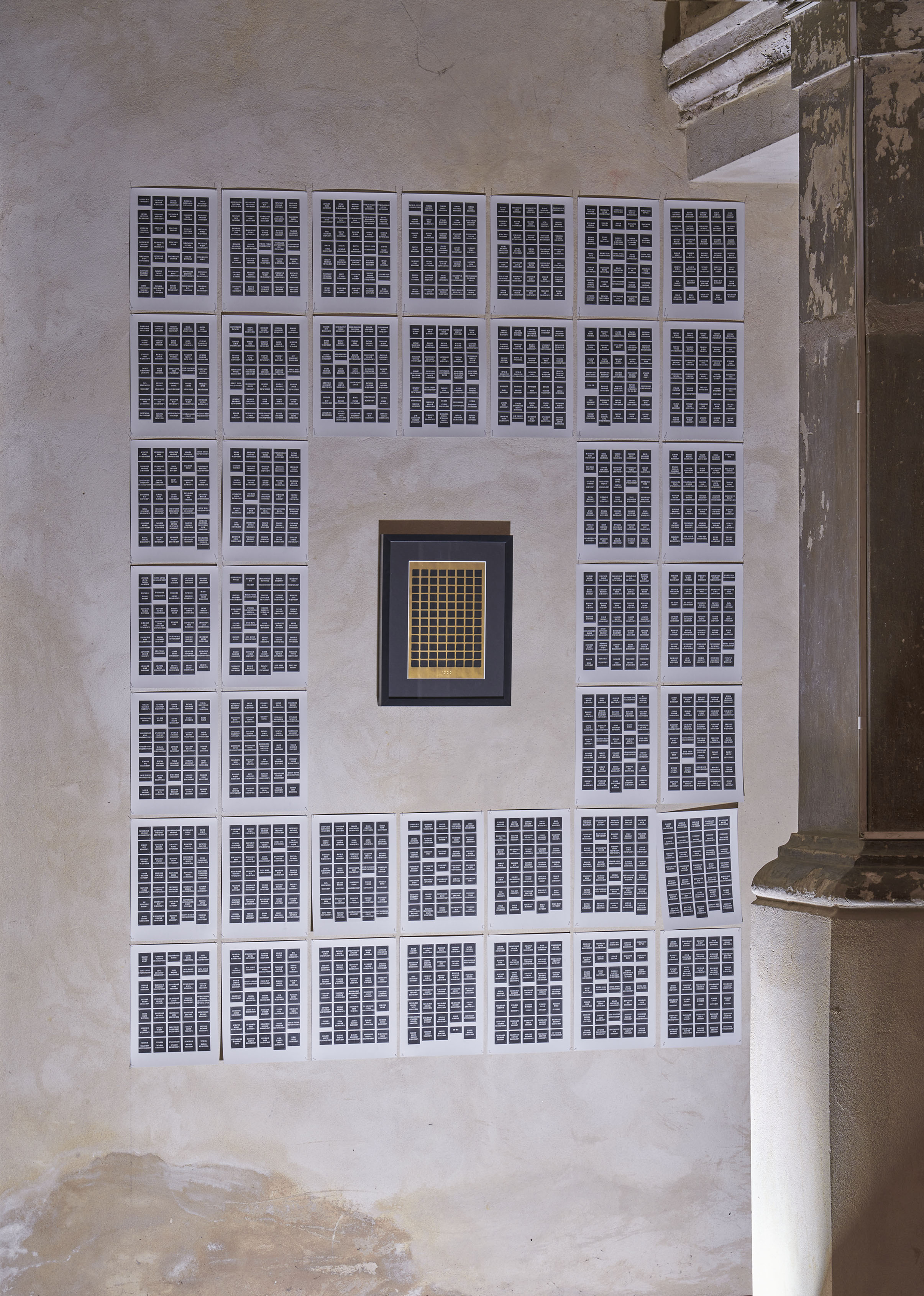 2021, Installation 36 x A4 sheets + 1 framed gold leaf print on paper, 150 x 180 cm, Ed. 1/4