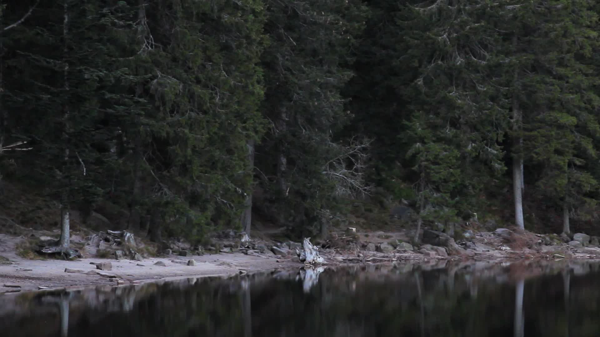 Paradise Falls I was shot in the Black Forest in 2011 during an Artist Residency with the Christoph Merian Stiftung in Basel, Switzerland. The lake where the work is set, situated on top of an extinct volcano, is called Mummelsee (Mother Lake). There are many myths associated with this lake in German folklore, most notably about a siren who lures men into the forest and kills them. In McMillan’s video, a ghostly female form flickers in and out of view at the edges of of the otherwise still landscape. Setting up an interplay between landscape, memory, forgetting and history, Paradise Falls I considers how history can leave a residue in the landscape and the past often comes back to haunt us.